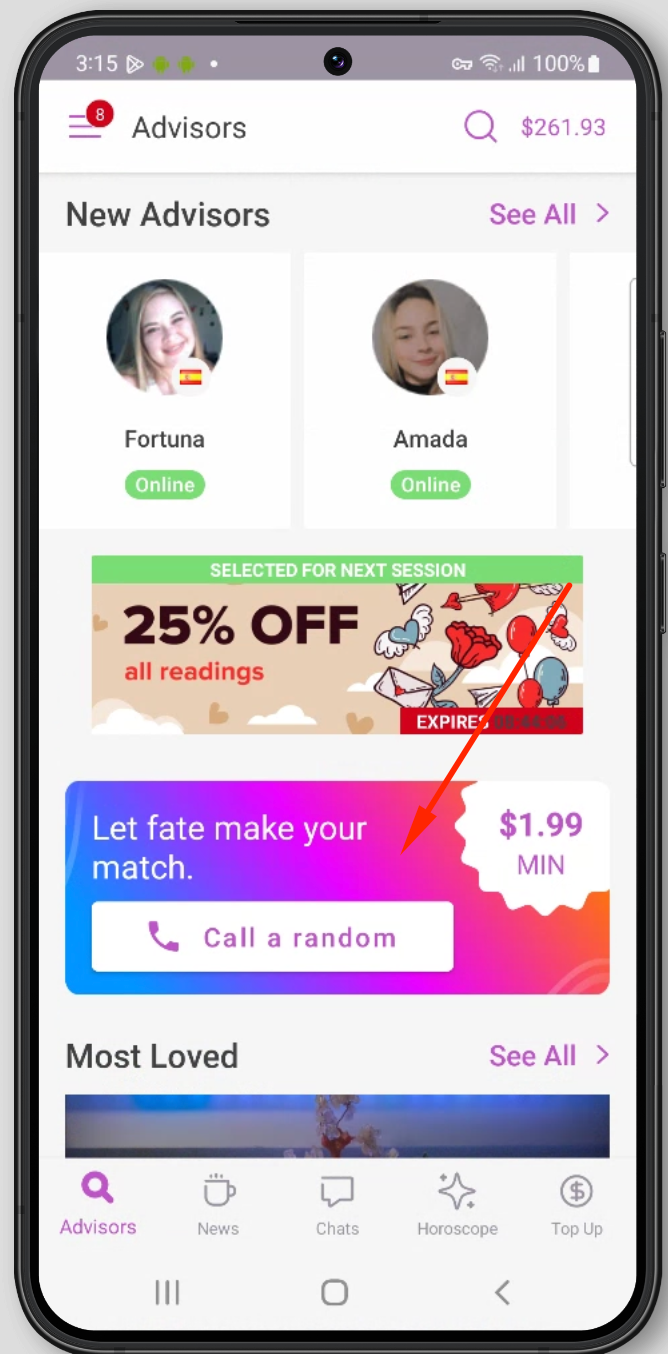 Calling never disappoints! Can’t reach your advisor? We’ll connect you to a random reader for the lowest price!